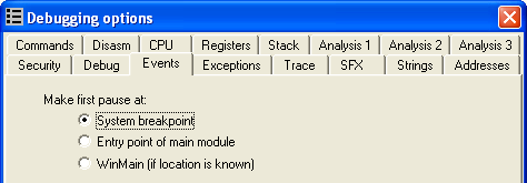 - Configure the debugger to pause on the system entry point, instead of the traditional program entry point.