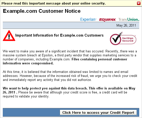 Fake Epsilon Breach Warning Phishes for Credit Report Customers