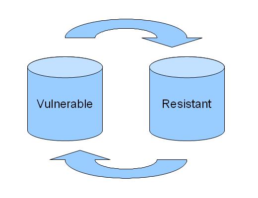 As mentioned earlier, a user may change state from resistant to vulnerable if they are distracted, and alertness can change a user from a vulnerable state into a resistant state. New attack methods or schemes can shift a large population of users from resistant back to vulnerable. While timely communication out to the users can counter this shift, returning them to a resistant state.