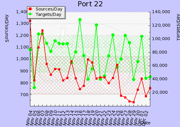 We have received a report of ongoing SSH account brute forcing against root. This activity has been ongoing for about a week now from various IPs. I have also noticed similar activity against one of my server ongoing since mid November from different IPs. A review of the DShield data, shows a spike can easily be observed starting 15 Nov and has been up/down ever since.