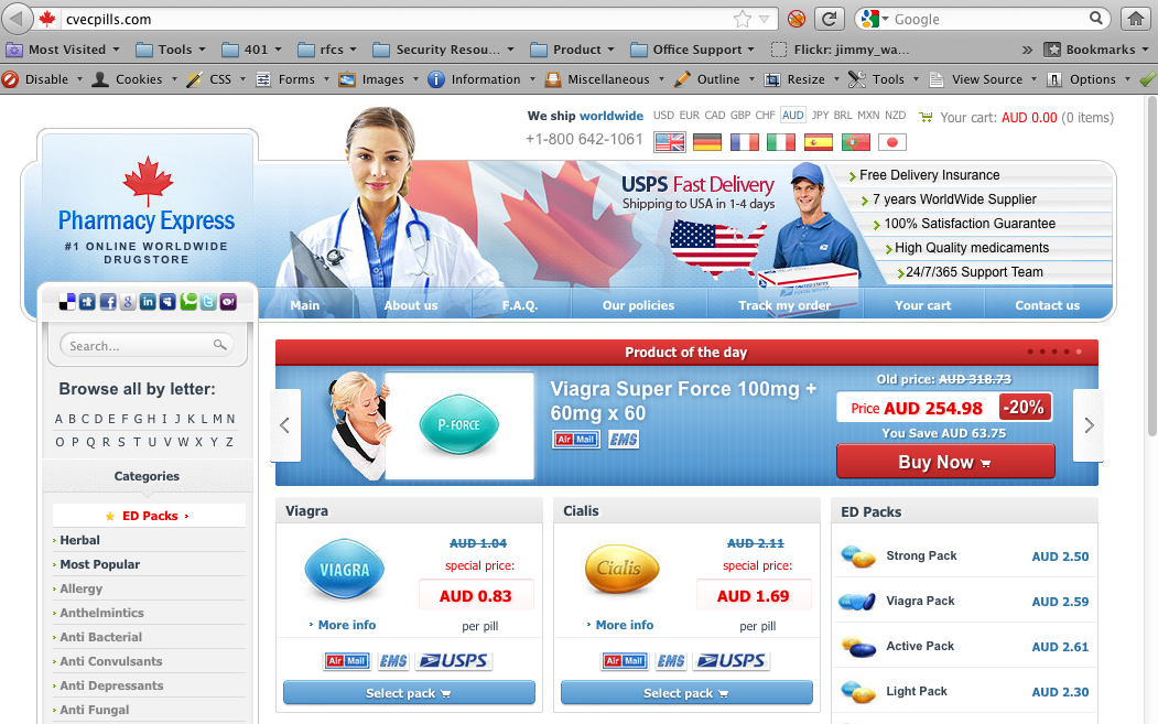 When I did click the link, I got a second surprise. To be honest I was expecting a facebook login page, failing that I was expecting malware, but what I ended up with was this. Plain old SPAM