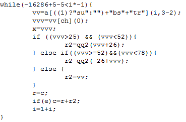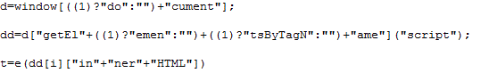 Unlike "older" obfuscation methods, this "Blacole" encoding is almost human readable again. But automated analysis still has a tough time with it, because the code is heavy on browser objects and function prototypes: