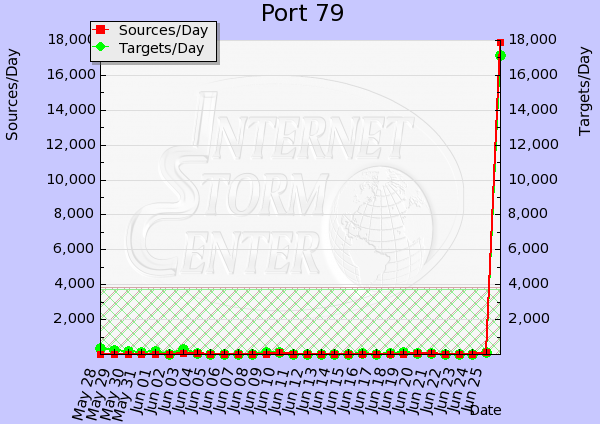 Update 1330 UTC: Scanning for tcp/79 has been seen by many ISC readers, and most say the IP blocks it originated from are in China and Taiwan. No packets yet - looks like everyone has tcp/79 blocked, and only recorded the initial "SYN".