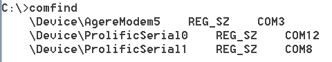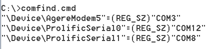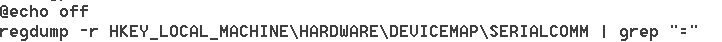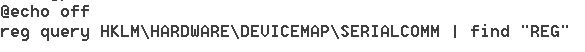 reg query HKEY_LOCAL_MACHINE\HARDWARE\DEVICEMAP\SERIALCOMM | find "REG_SZ"