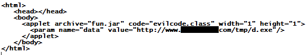 A Java archive called "fun.jar" containing an "evilcode.class" file that runs as an applet of 1x1 pixels size ... well, this can't be anything good. And it indeed isn't. This code snippet was lurking on quite a few web sites over the past days.