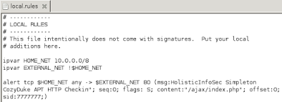 Judy Novak's SANS GIAC Certified Intrusion Analyst Day 5 content offers a nice set of walk-throughs using Scapy, and given that it is copyrighted and private material, I won't share them here, but will follow a similar path so you have something to play along with at home. We'll use a real-world APT scenario given recent and unprecedented Russian meddling in American politics. According to SC Magazine, "Russian government hackers apparently broke into the Democratic National Committee (DNC) computer systems" in infiltrations believed to be the work of two different Russian groups, namely Cozy Bear/ CozyDuke/APT 29 and Fancy Bear/Sofacy/APT 28, working separately. As is often the case, ironically and consistently, one the best overviews of CozyDuke behaviors comes via Kaspersky's Securelist. This article is cited as the reference in a number of Emerging Threats Snort/Suricata rules for CozyDuke. Among them, 2020962 - ET TROJAN CozyDuke APT HTTP Checkin, found in the trojan.rules file, serves as a fine exemplar.